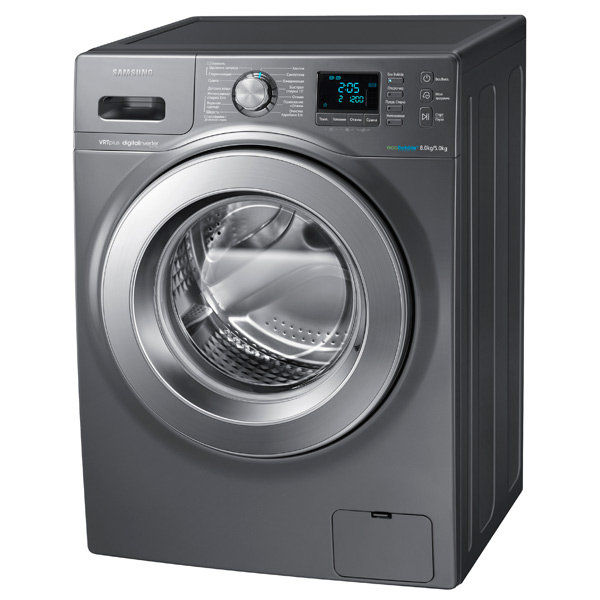 Стиральная машинка Samsung относится к изделиям с фронтальной загрузкой. Люк вместительного барабана открывается на 180°. Следовательно, Вам будет очень легко закладывать бельё.